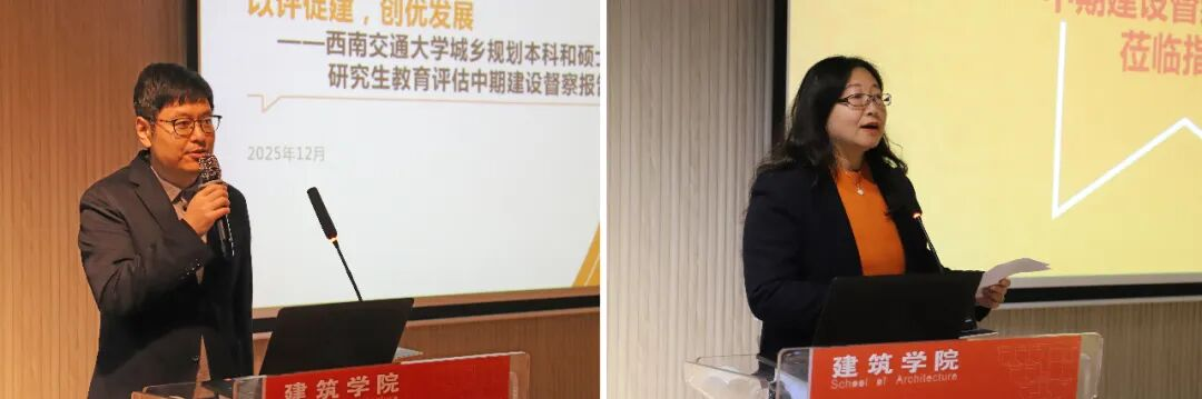 教授、博士生导师、城市规划系主任周剑云,重庆市规划设计研究院罗江帆正高级工程师组成,重点对我校城乡规划专业自2022年以六年期优秀通过本科和硕士研究生教育评估后,专业建设情况开展专项督察。