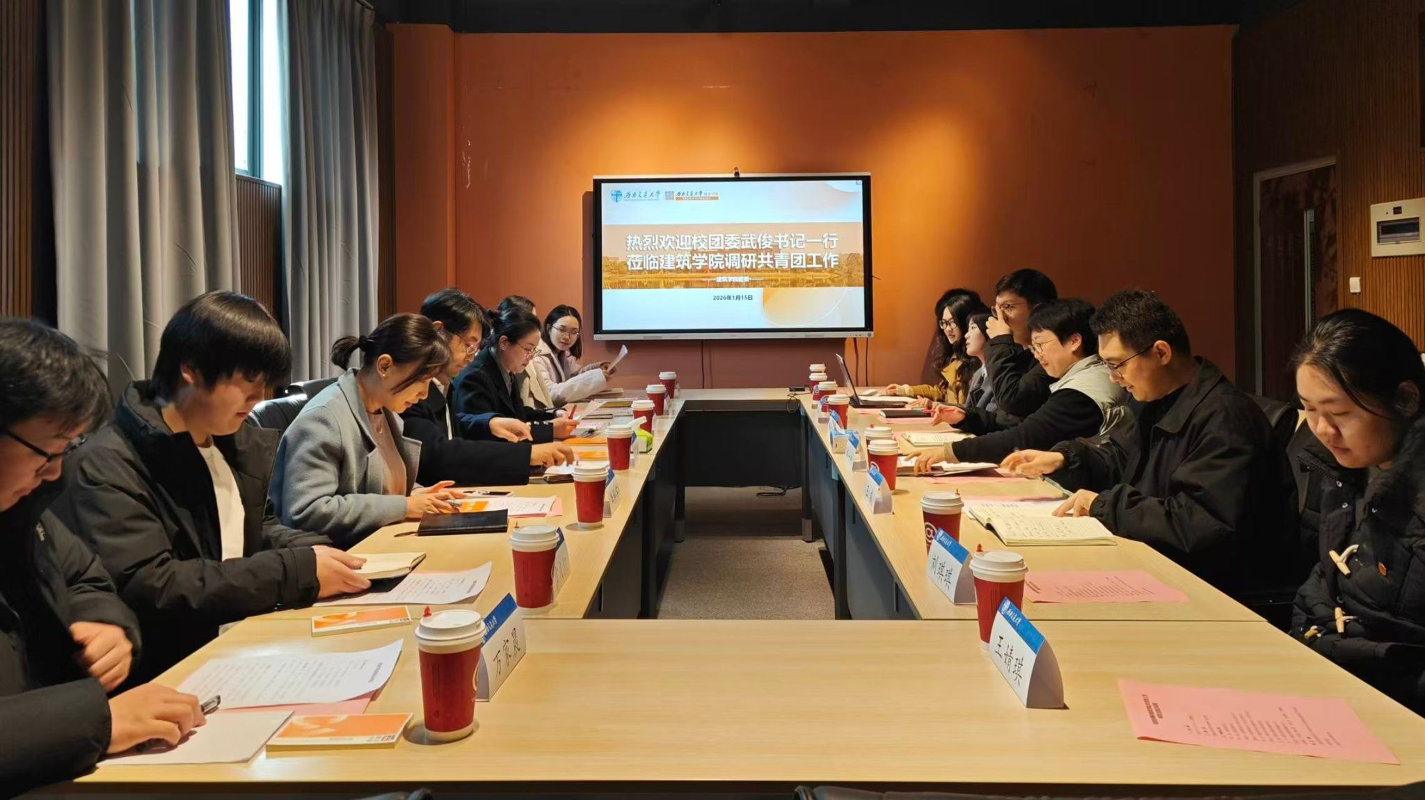 调研指导共青团工作,调研座谈会由学院党委副书记刘一杰主持。学院团委辅导员、主要学生组织干部参会,校团委青年发展办公室主任李振宇、组织工作办公室科员屈姝含陪同调研。
