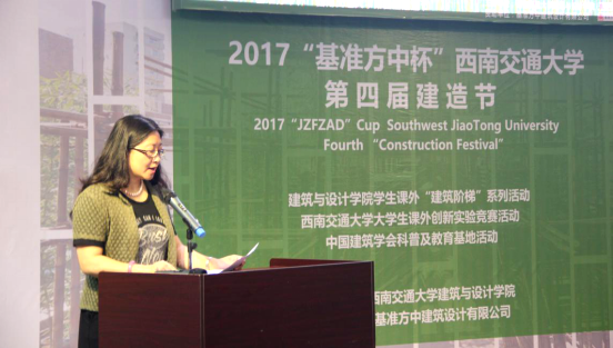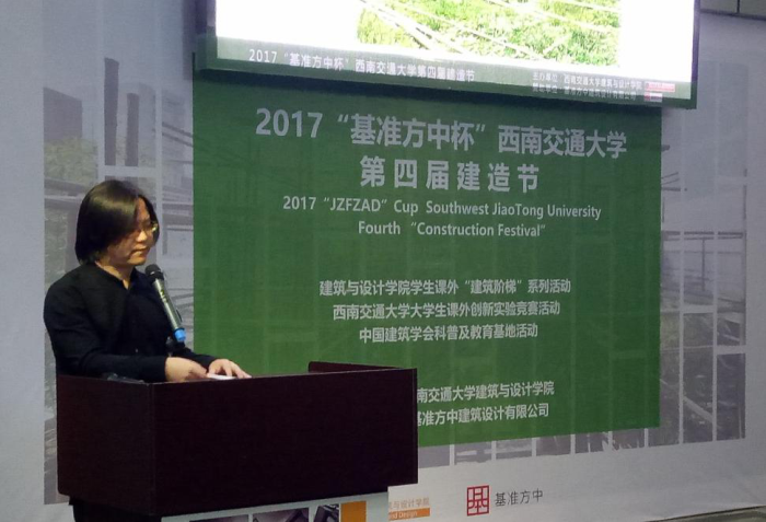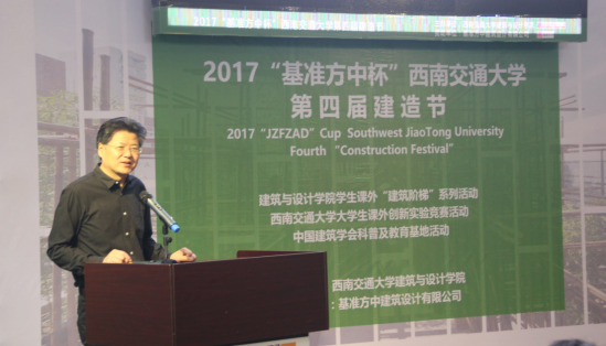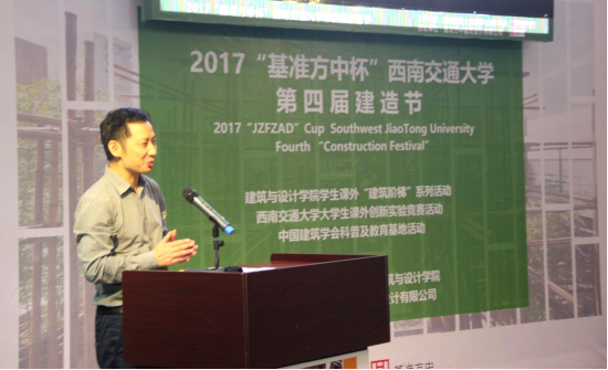 主办,基准方中建筑设计有限公司赞助支持的2017 “基准方中杯”av直播第四届建造节评审活动及闭幕式在犀浦校区建筑与设计馆(8号教学楼)中庭召开。本次活动也是建筑与设计学院学生课外“建筑阶梯”系列活动、av直播大学生课外创新实验竞赛活动、中国建筑学会科普及教育基地活动。院党委书记、院长沈中伟教授,基准方中高级董事、执行总经理谢静先生,中国建筑西南设计研究院常务总建筑师刘艺先生,相关部处领导,学院、系相关领导,指导老师及参赛学生代表等参加了闭幕式。闭幕式由副院长杨青娟主持。