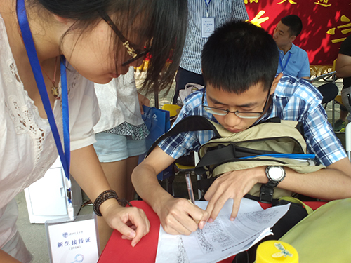 上午一直骄阳似火,大家同样热情不减。各位班主任的手机电话不断,尽可能第一时间帮大家解决好问题;小志愿者们因为帮忙搬行李,身上的衬衫也有汗湿的痕迹;女志愿者们也拿出了“汉子”的气势,来回忙碌着。今天报到的十几个新生也十分给力,开朗的性格让迎新点欢笑不断,部分新生在安顿好寝室之后回到迎新点主动提出要给工作人员们帮忙。