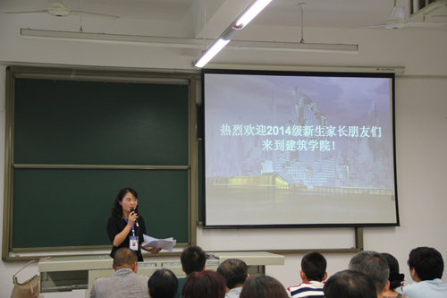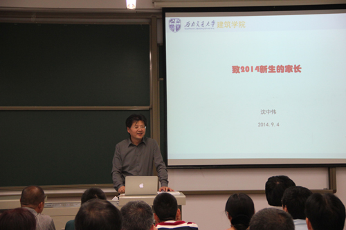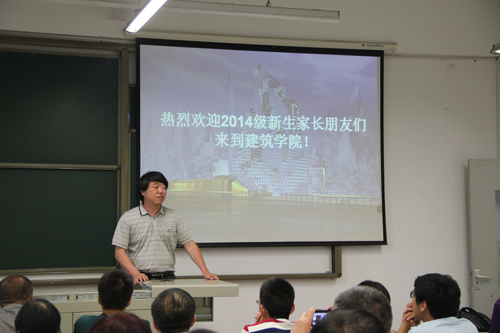 建筑学、风景园林、城市规划三个专业特色及近年来取得的成就,特别是在2014年全国建筑学专业(本、硕)评估工作中,建筑学专业本科、研究生教育评估获得七年期最高级双优秀通过。随后,从先进的办学理念及人才培养目标、教学科研及一流的师资队伍、优越的文化氛围及良好的办学环境、国际化交流等方面做了全面介绍。最后沈院长讲到:希望通过这次家长见面会,架起学院与家长沟通的桥梁,与学院共同培养孩子,让学生们在学院和家长的呵护下健康成长。